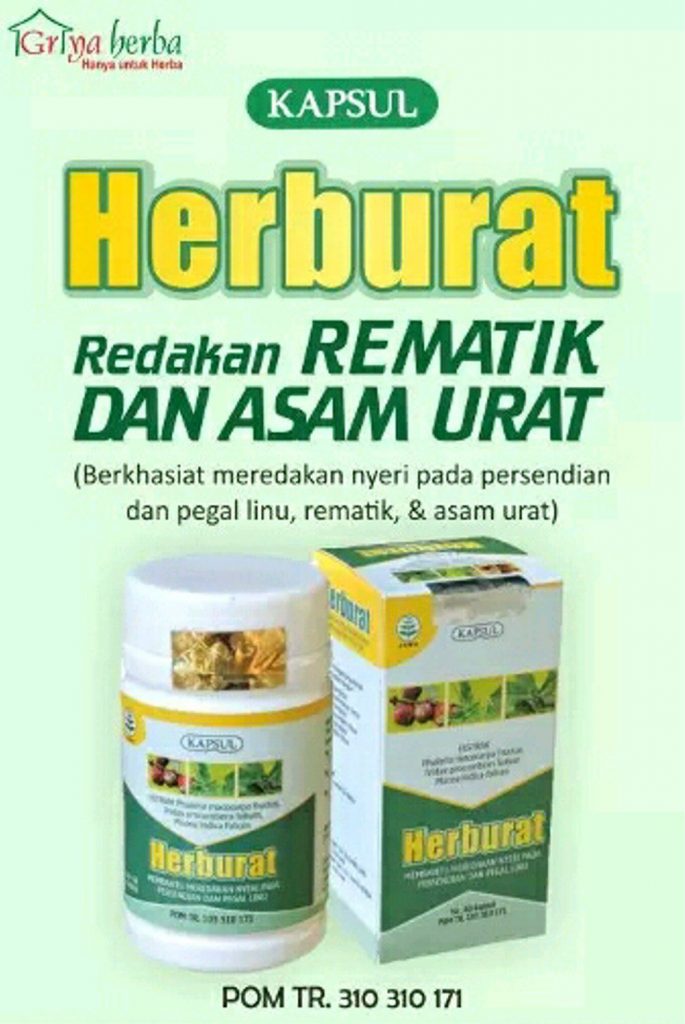 HERBURAT dikomposisikan dari ekstrak bahan alami yakni songgolangit, buah mahkota dewa, serta daun beluntas efektif menormalkan kadar asam urat secara alami.